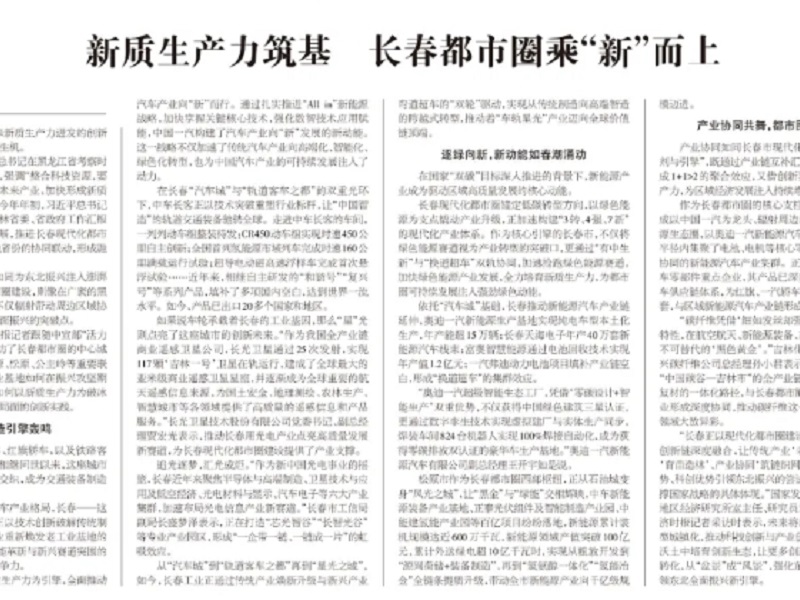 ● 中國(guó)經(jīng)濟(jì)時(shí)報(bào)-新質(zhì)生產(chǎn)力筑基 長(zhǎng)春都市圈乘“新”而上 如果說(shuō)車輪承載著長(zhǎng)春的工業(yè)基因,那么“星”光則點(diǎn)亮了這座城市的創(chuàng)新未來(lái)?!白鳛槲覈?guó)全產(chǎn)業(yè)鏈商業(yè)遙感衛(wèi)星公司,長(zhǎng)光衛(wèi)星通過(guò)25次發(fā)射,實(shí)現(xiàn)117顆‘吉林一號(hào)’衛(wèi)星在軌運(yùn)行,建成了全球最大的亞米級(jí)商業(yè)遙感衛(wèi)星星座。 2025-08-06