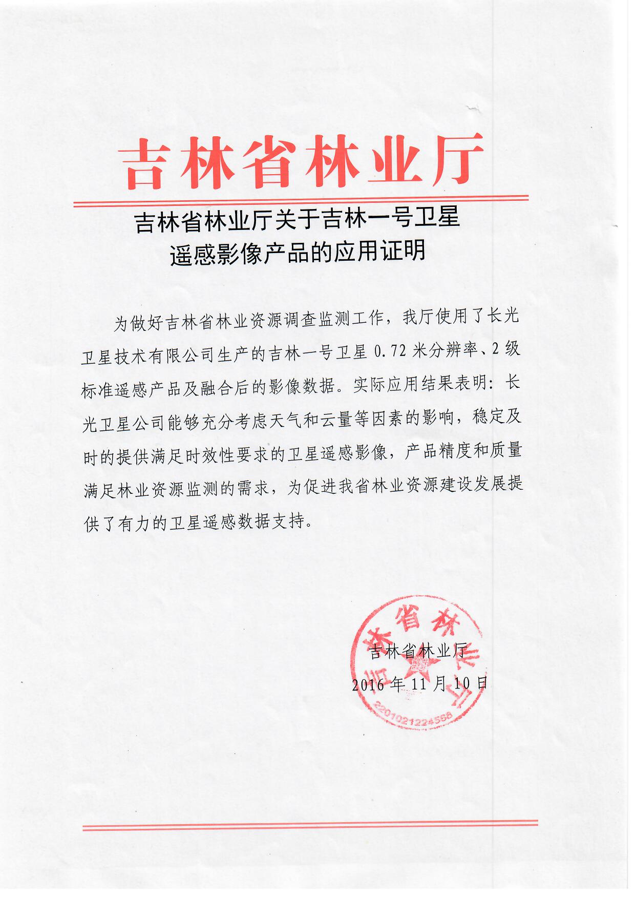 產(chǎn)品應(yīng)用證明-吉林省林業(yè)廳