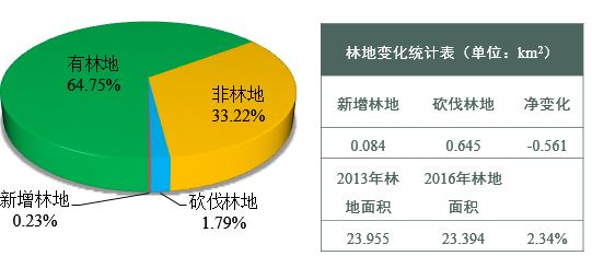 樣區(qū)內(nèi)2013年至2016年的林地變更情況如下: